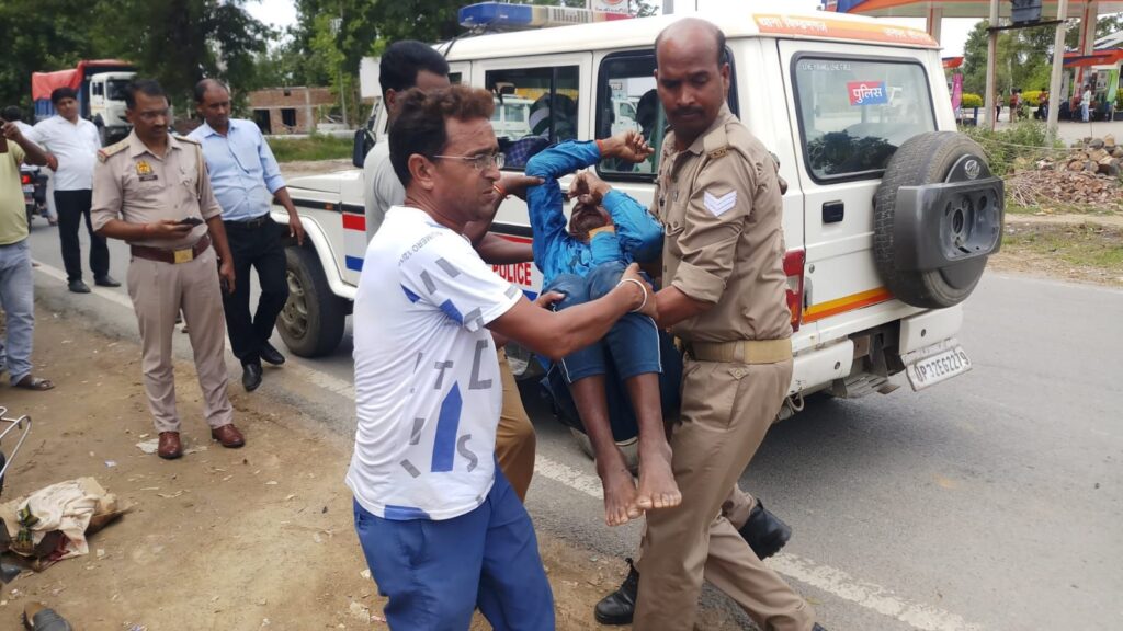 विढंमगंज-सोनभद्र। थाना क्षेत्र के अंतर्गत कोलिनडूबा ग्राम पंचायत से होकर गुजरने वाली रांची-रीवा राष्ट्रीय राजमार्ग पर आज टीवीएस मोपेड पर सवार अनंतकार पनीका उम्र लगभग 50 वर्ष पुत्र बालगोविंद पनीका निवासी गांव अजानिया थाना कोन को चार चक्के की गाड़ी से टक्कर लगने की सूचना पर पहुंचे थाना प्रभारी निरीक्षक प्रमोद कुमार यादव ने घायल उक्त व्यक्ति को प्राथमिक स्वास्थ्य केंद्र विढमगंज पर लाया। जहाँ मौजूद डॉक्टर सत्येंद्र प्रसाद के द्वारा तत्काल इलाज किया जा रहा है। कोलिनडूबा ग्राम