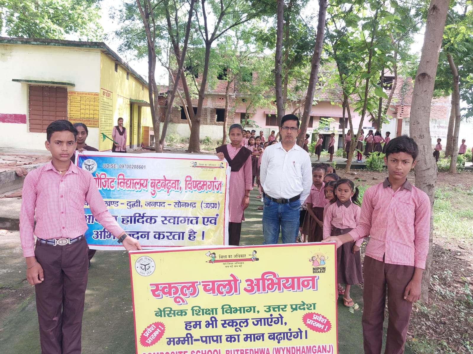 चौराहा, रामलीला ग्राउंड, आदर्श नगर, शिवमन्दिर चौराहा, मुस्लिम बस्ती व कहारी मुहल्ला आदि क्षेत्रों में रैली निकाल अभिभावकों को विद्यालयों में प्रवेश एवं उपस्थिति हेतु प्रेरित किया। इस दौरान बच्चों ने नामांकन बढ़ाने के लिए विभिन्न नारे एक भी बच्चा छुटा, संकल्प हमार टूटा, हम भी स्कूल जाएंगे, मम्मी-पापा का मान बढ़ाएंगे, हम बच्चों का नारा है शिक्षा अधिकार हमारा है आदि नारे लगाए। इसी के साथ संचारी रोग नियंत्रण हेतु भी बच्चों ने नारे “संचारी रोग भगाना है, स्वच्छता को अपनाना है” स्वस्थ व्यवहार अपनाना है, संचारी रोगों को हराना है। प्रधानाध्यापक राजकमल यादव ने बताया कि खण्ड शिक्षा अधिकारी दुद्धी प्रेम शंकर राम के मार्ग निर्देशन में आज रैली निकाली गई। जिसमें 6 से 14 वर्ष के सभी बच्चों को स्कूल में नामांकित कराने के साथ-साथ रोज बच्चों को स्कूल भेजना हर अभिभावक का दायित्व होना चाहिए तभी बच्चों का भविष्य उज्जवल होगा। विद्यालय में जो भी बच्चे नामांकन से छुटे हैं उन्हें प्रवेश दिलायें ताकि समय से उन्हें पाठ्य पुस्तकें तथा डी०बी०टी० का लाभ दिलाया जा सके। इस अवसर पर अनुराग तिवारी अंजू रानी, श्वेता जयसवाल, पदमावती देवी, चंचला गुप्ता व अभिभावक उपस्थित रहे।