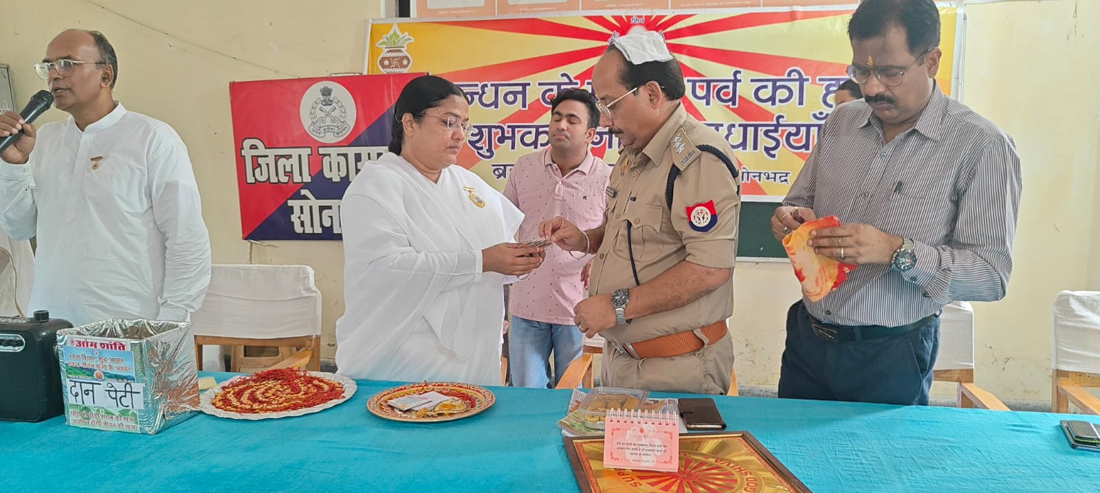 गुरमा-सोनभद्र।मानवता की सेवा के लिए समर्पित आध्यात्मिक संस्था प्रजापिता ब्रह्माकुमारी ईश्वरीय विश्व विद्यालय के रॉबर्ट्सगंज सेवा केंद्र द्वारा रक्षाबंधन के अवसर पर सेवा संकल्प के पांचवें दिन गुरमा स्थित जिला कारागार में 196 लोगों को रक्षासूत्र बांधा गया।