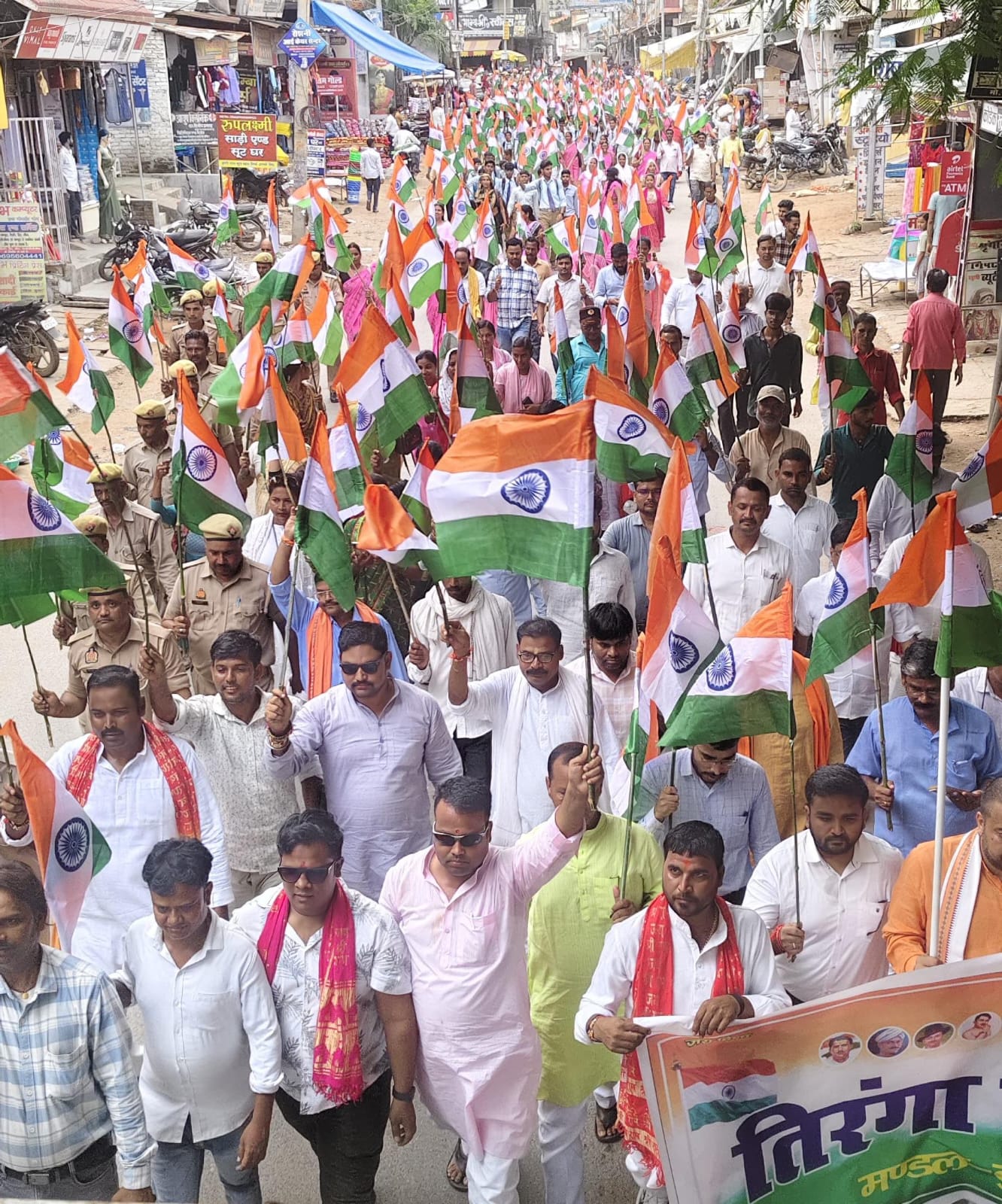 आंगनबाड़ी, पीआरडी के जवान सहित भाजपा के सैकड़ो महिला पुरुष कार्यकर्ता रामलीला मैदान से कस्बे के मुख्य मार्ग से भ्रमण करते हुए भारत माता की जय वंदे मातरम के उद्घोष से पूरा कस्बा गुंजामय हो गया।कस्बे में भ्रमण उपरांत पुनः रामलीला मैदान पर पहुंच