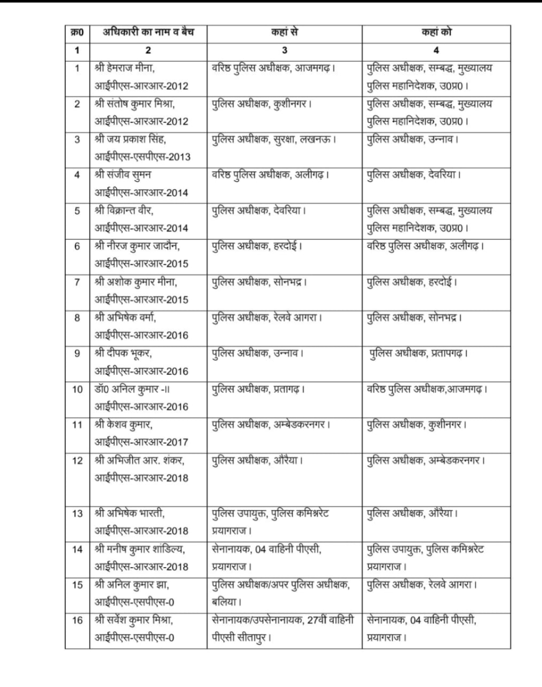 यूपी में 16 आईपीएस अफसरों के हुए तबादले