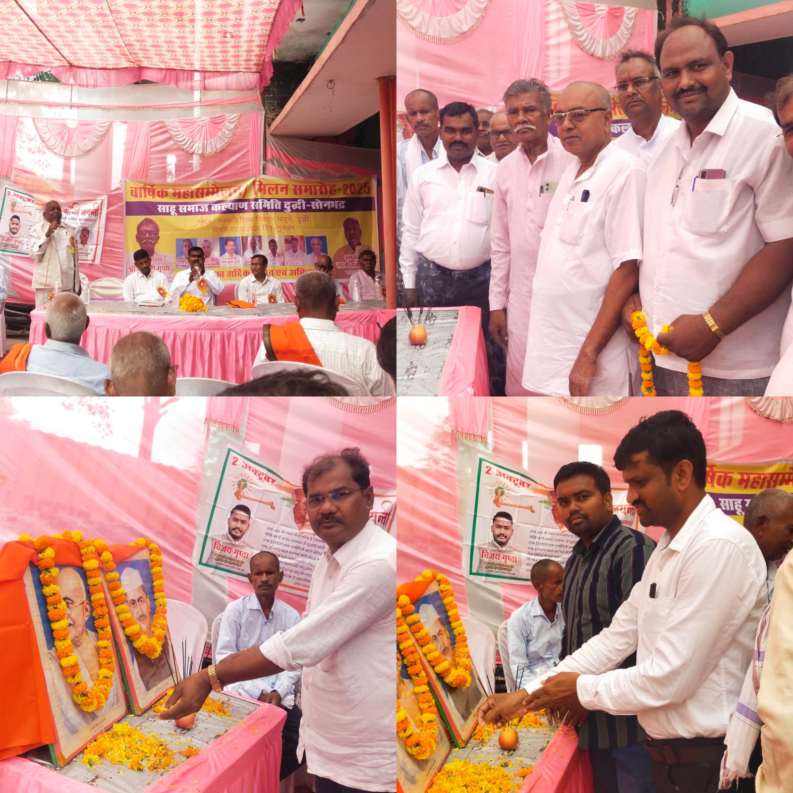 दुद्धी-सोनभद्र। साहू समाज कल्याण समिति के तत्वाधान में दो अक्टूबर के अवसर पर वार्षिक महासम्मेलन एवं मिलन समारोह का आयोजन ग्राम खजुरी के सरस्वती शिक्षा निकेतन परिसर में गुरुवार को आयोजित की गई। इस दौरान कार्यक्रम के मुख्य अतिथि साहित्य संगम एकेडमी वाराणसी के अध्यक्ष रामजी गुप्ता साहू समाज के अध्यक्ष लक्ष्मीशंकर साहू सहित