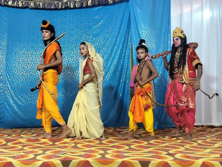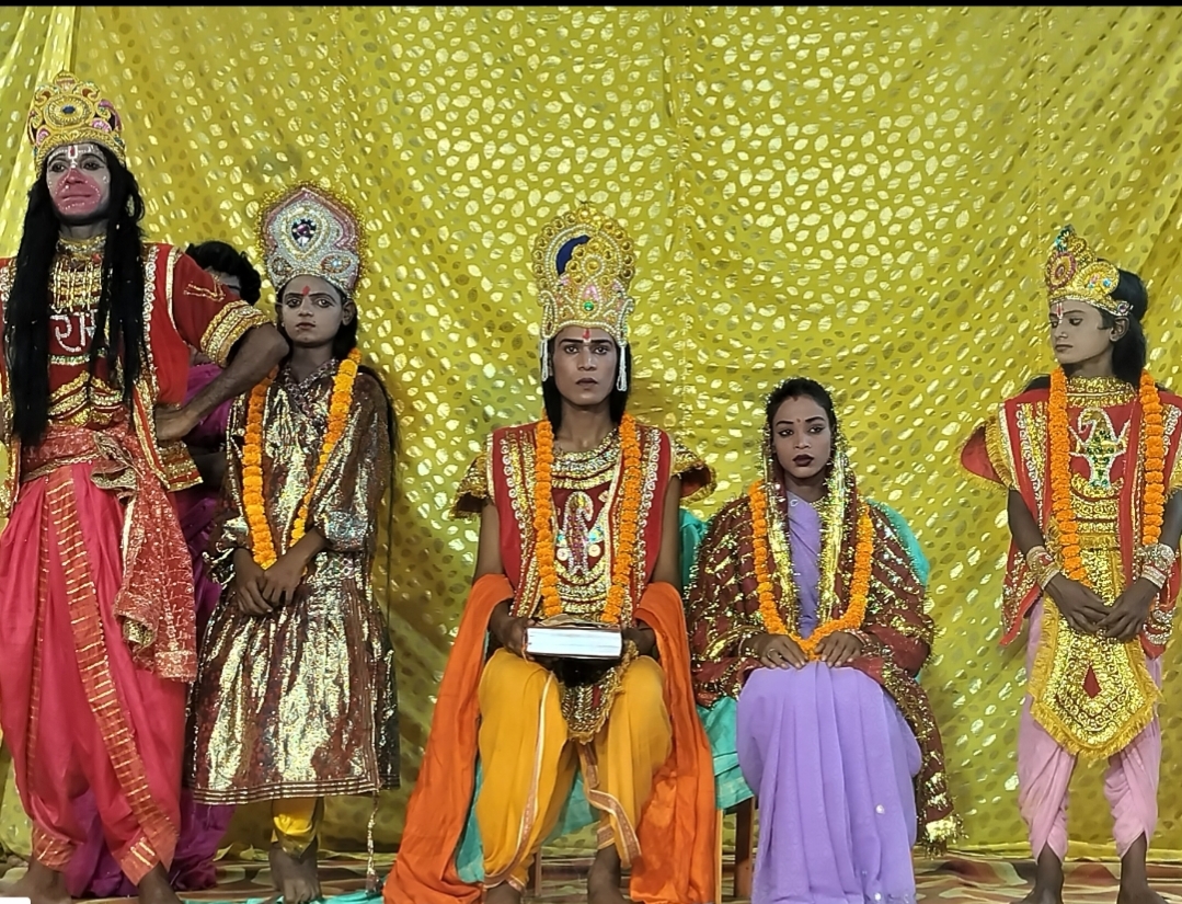 शाहगंज-सोनभद्र। स्थानीय बाजार में रात्रिकालीन रामलीला का आयोजन जंग बहादुर सिंह इण्टर कालेज शाहगंज के प्रांगण में मिथिला जनकपुर से आए कलाकारों के द्वारा रामलीला के आखिरी दिन भगवान श्री रामजी, माता सीता, लक्ष्मण व हनुमान जी के