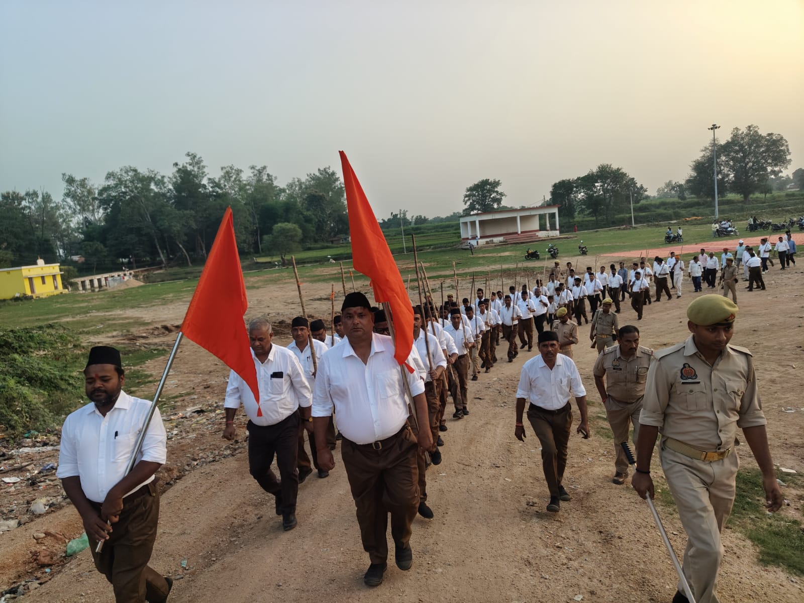विंढमगंज (सोनभद्र)। राष्ट्रीय स्वयंसेवक संघ की स्थापना के 100 वर्ष पूरे होने के उपलक्ष्य में विंढमगंज इकाई की ओर से रविवार दोपहर भारतीय इंटरमीडिएट कॉलेज के खेल मैदान से भव्य पद संचलन कार्यक्रम का आयोजन किया गया। कार्यक्रम का शुभारंभ दोपहर