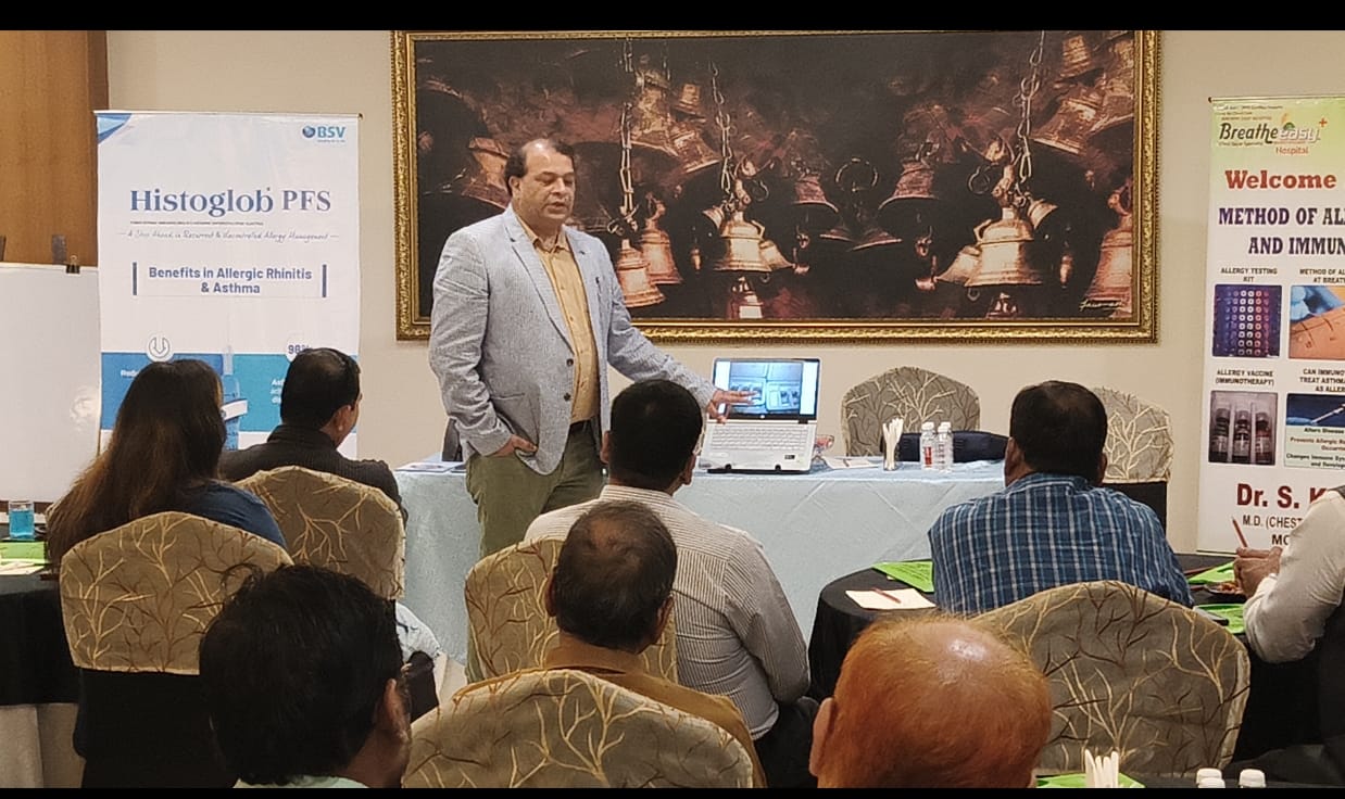 निदान एवं इम्यूनोथेरेपी की प्रभावशीलता पर विस्तार से प्रकाश डाला। उन्होंने बताया कि इम्यूनोथेरेपी वैक्सीन द्वारा आधुनिक चिकित्सा पद्धतियाँ से एलर्जी रोग से पीड़ित रोगियों के जीवन की गुणवत्ता को बेहतर स्थाई ईलाज संभव है । इन्होने बताया कि बार बार सर्दी जुकाम, अस्थमा का कारण बन सकता है , समय रहते यदि एलर्जी का सुचार रूप से इम्यूनोथेरेपी द्वारा ईलाज हो जाता है तो अस्थमा जैसी गंभीर बीमारी से बचा जा सकता है। इस अवसर पर रामनगर के प्रतिष्ठित चिकित्सकों की गरिमामयी उपस्थिति रही, जिनमें शामिल थे – डॉ ओ. पी. सिंह, डॉ विकास सिंह, डॉ ओम यति, डॉ यस बी सिंह, डॉ शिवा जी सिंह, डॉ संगीता, डॉ स्वेता पांडेय और डॉ कुलदीप कुमार शामिल थे। सेमिनार का उद्देश्य स्थानीय चिकित्सकों को एलर्जी एवं इम्यूनोथेरेपी के क्षेत्र में नवीनतम जानकारी प्रदान करना था, जिससे वे अपने रोगियों को और अधिक प्रभावी उपचार दे सकें। ब्रेथ ईजी हॉस्पिटल द्वारा ऐसे आयोजनों की निरंतर पहल चिकित्सा क्षेत्र में जागरूकता और सहयोग को बढ़ावा देने की दिशा में एक सराहनीय कदम है।