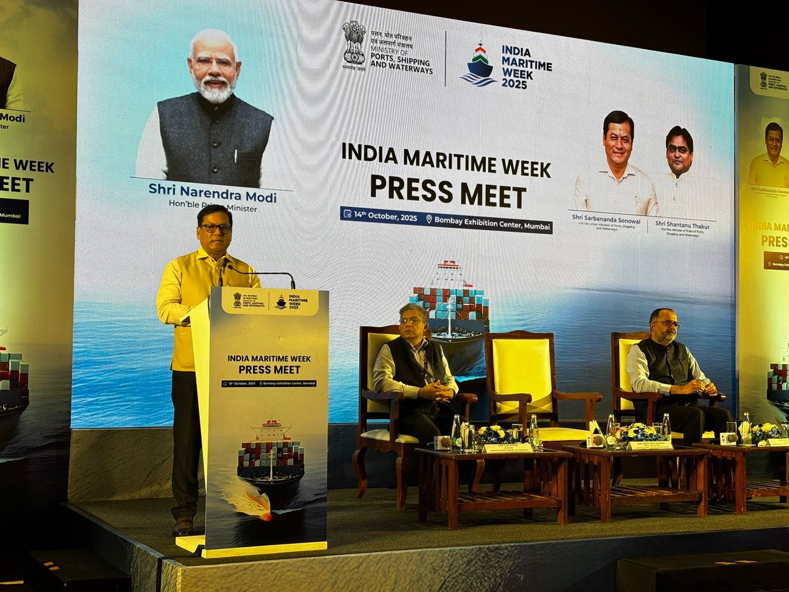 मुंबई (अनिल बेदाग): इंडिया मैरीटाइम वीक 2025 से पहले केंद्रीय मंत्री सर्बानंद सोनोवाल ने मुंबई में प्रेस कॉन्फ्रेंस के दौरान भारत की ब्लू इकॉनॉमी के लिए ऐतिहासिक दृष्टिकोण प्रस्तुत किया। उन्होंने बताया कि 2047 तक देश के समुद्री क्षेत्र में ₹80 लाख करोड़ का निवेश और 1.5 करोड़ नौकरियों के सृजन का लक्ष्य तय