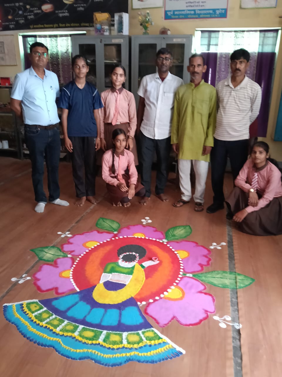 प्रेरणा और मार्गदर्शन में पूनम सिंह ,सृष्टि, निधि पांडेय,सुषमा,ममता, कोमल, ज्योती, अंबिया,अनन्या, अमनजीत सिंह, आजाद आदि छात्र -छात्राओं ने स्कूल में ऐसी रंगोली बनाई जो जीवंत सी प्रतीत हो रही है। डिजाइनदार फूल पत्तियों तथा मानव आकृति की खूबसूरत रंगोली बनाकर अपने भीतर छिपे हुनर को प्रदर्शित कर दिया। मौके पर पहुंचे पूर्व विद्यालय प्रबंधन समिति के अध्यक्ष एवं वरिष्ठ पत्रकार ज्ञानदास कनौजिया ने बच्चों के उक्त कलाकृति की भूरि- भूरि प्रशंसा करते हुए इनके उज्जवल भविष्य की कामना की। प्रधानाध्यापक ने बताया कि इसमें शामिल बच्चों को उत्साहवर्धन हेतु पाठ्य सामग्री प्रदान कर सम्मानित किया जाएगा।