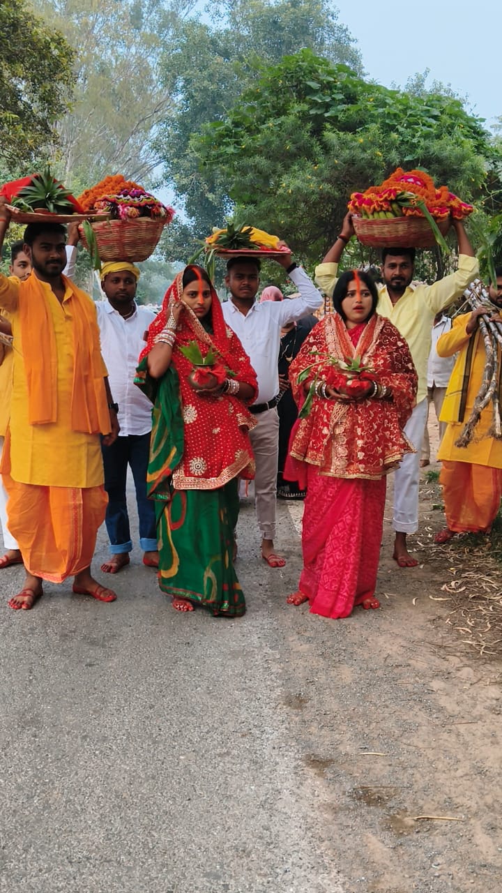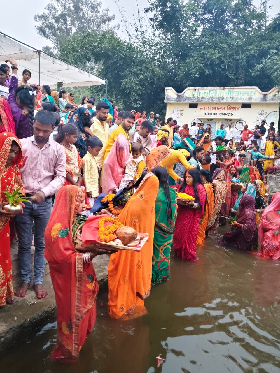 कांचहि बास के बहंगिया, बहंगी लचकत जाए आदि गा रही थी। घाट पर पहुंच ब्रती महिलाएं पानी में खड़े होकर डूबते सूर्य को अर्घ्य देने के बाद अपने-अपने वेदी पर ईख का मंडप बनाकर उसके मध्य देशी घी के जलते दीप को रखा। इसके साथ ही डलिया सूप में पूजा सामग्री रखकर पूजन- अर्चन की कहीं-कहीं ब्रती महिलाएं रात भर घाटों