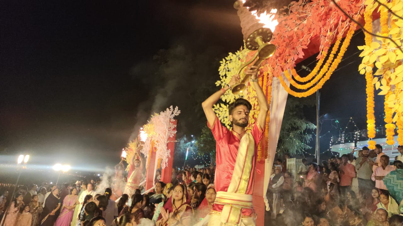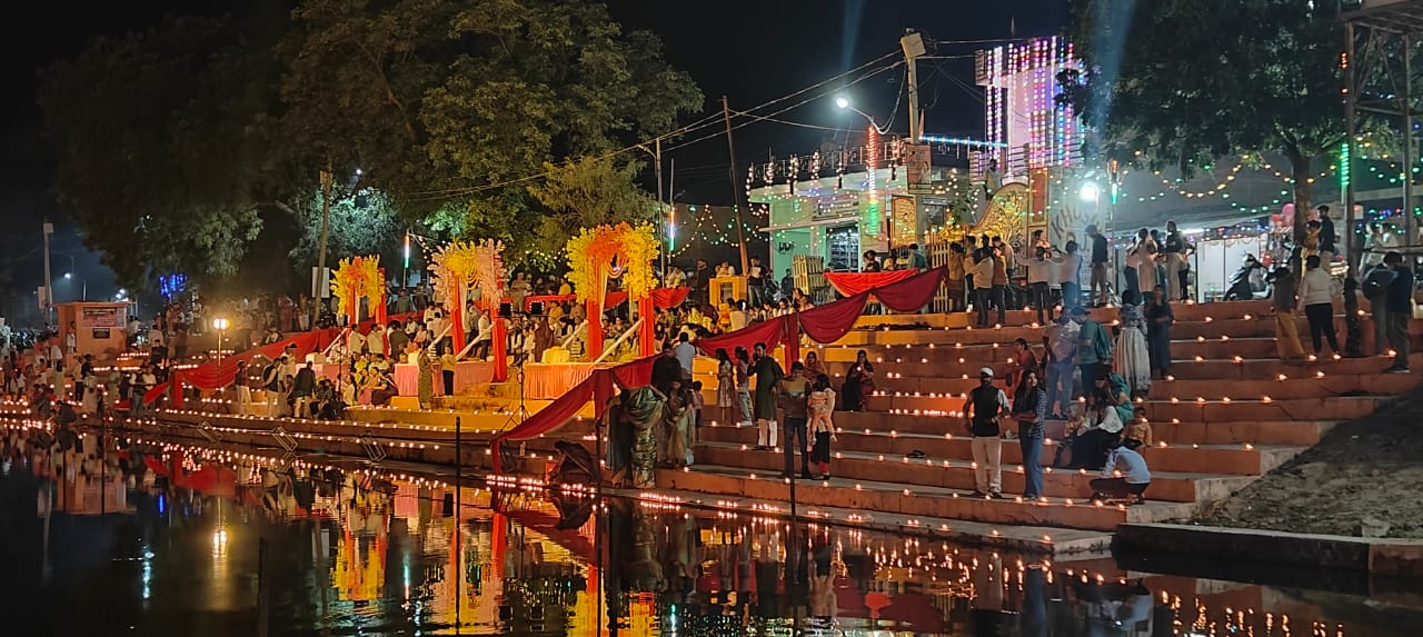 वही नगरवासियो एवं श्रद्धालुओं ने भी हजारों दिए छठ घाट के चारों तरफ जलाया