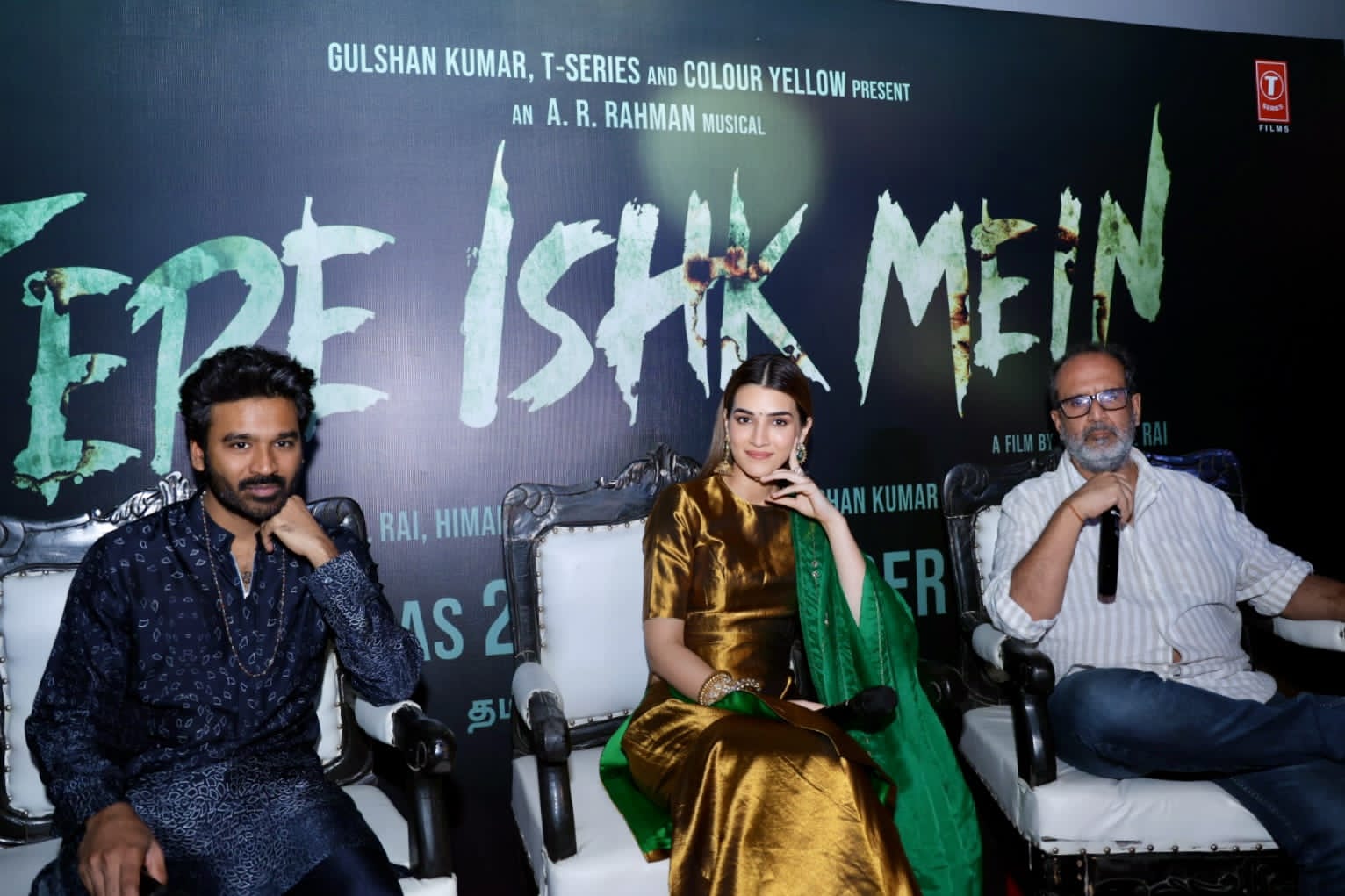 आनंद एल राय की फिल्म तेरे इश्क़ में, जिसे भूषण कुमार ने प्रोड्यूस किया है, को लेकर उत्साह लगातार बढ़ रहा है। दमदार ट्रेलर और ए.आर. रहमान के सुरीले गानों की वजह से देशभर में दर्शक इस फिल्म का बेसब्री से इंतज़ार कर रहे हैं। रिलीज़ से पहले ही फिल्म ने 24 घंटे के अंदर बुकिंग में जबरदस्त बढ़ोतरी देखी! जैसे-जैसे फिल्म अपनी भव्य रिलीज़ के निकट पहुँच रही है, स्टार कास्ट धनुष और कृति सैनन, साथ ही निर्देशक आनंद एल राय, प्रमोशन के लिए वाराणसी पहुँचे। यह शहर धनुष और राय दोनों के दिल के बेहद करीब रहा है और यहीं से उनकी रचनात्मक यात्रा की प्रेरणा की शुरुआत हुई थी।