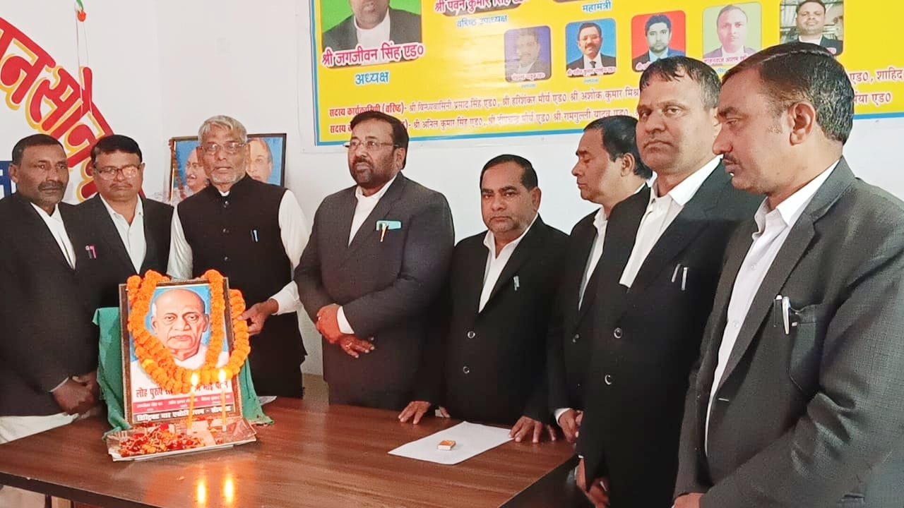 सोनभद्र।15दिसंबर 2025 डिस्ट्रिक्ट बार एसोसिएशन सोनभद्र के सभागार में वरिष्ठ उपाध्यक्ष पवन कुमार सिंह एडवोकेट की अध्यक्षता में लौह पुरुष सरदार वल्लभभाई पटेल का 75वां पुण्यतिथि मनाया गया। जगजीवन सिंह एडवोकेट ने कहा भारत की राष्ट्रीय एकता के सूत्रधार, एकीकृत भारत के शिल्पकार, लौह पुरुष सरदार वल्लभभाई पटेल की पुण्यतिथि पर सादर नमन करता हूं। स्वतंत्र भारत के प्रथम उपप्रधानमंत्री