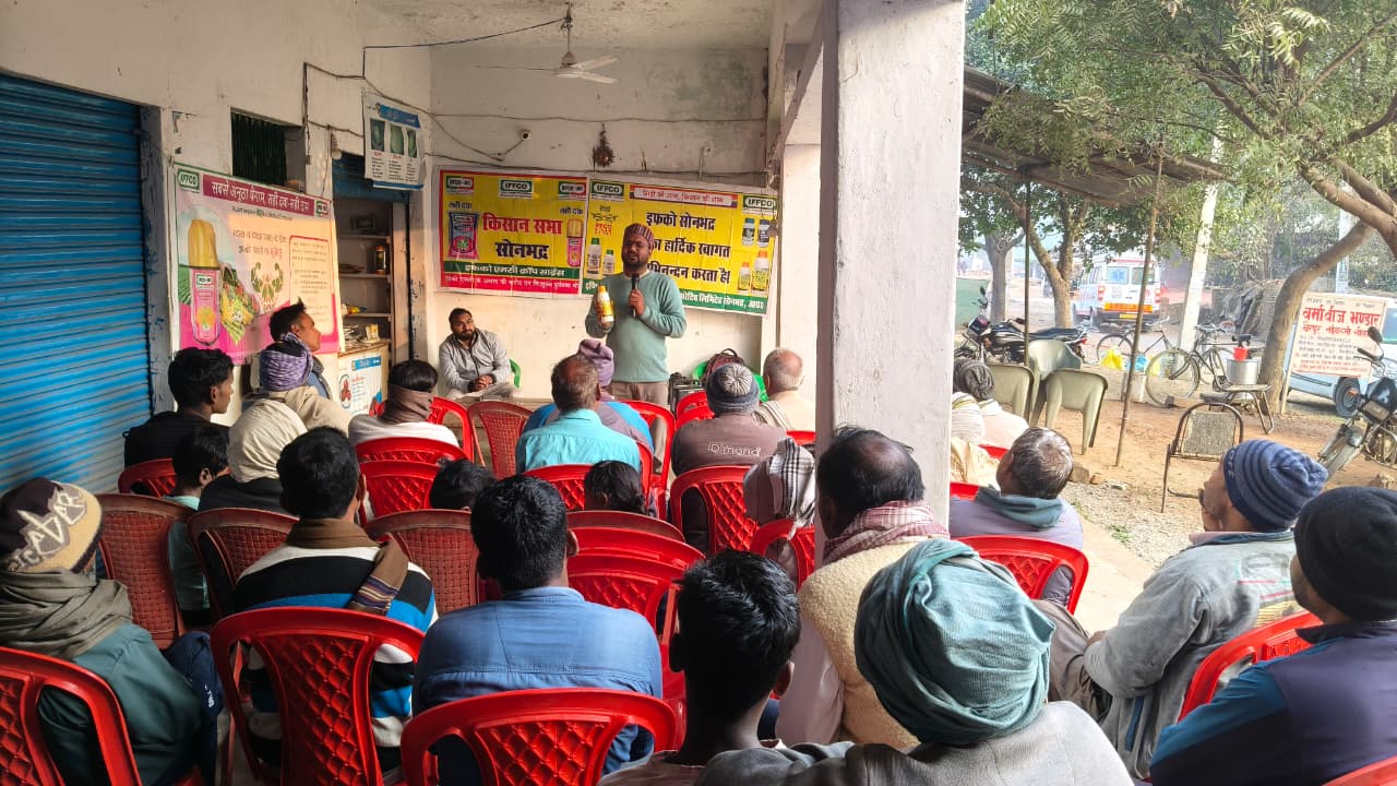 किग्रा बीज से बीज शोधन एवं 5 मि.ली./लीटर पानी से 1–2 छिड़काव करने की सलाह दी । इसके अतिरिक्त जैव उर्वरक, सागरिका, जल-विलेय उर्वरक एवं संकट हरण बीमा योजना के विषय मे विस्तार से जानकारी दी ।किसान सभा मे इफको प्रतिनिधियों के अतिरिक्त एडीओ सहकारिता कर्मा, बीपैक्स सचिव कर्मा तथा सैकड़ो स्थानीय कृषक भी उपस्थित रहे।