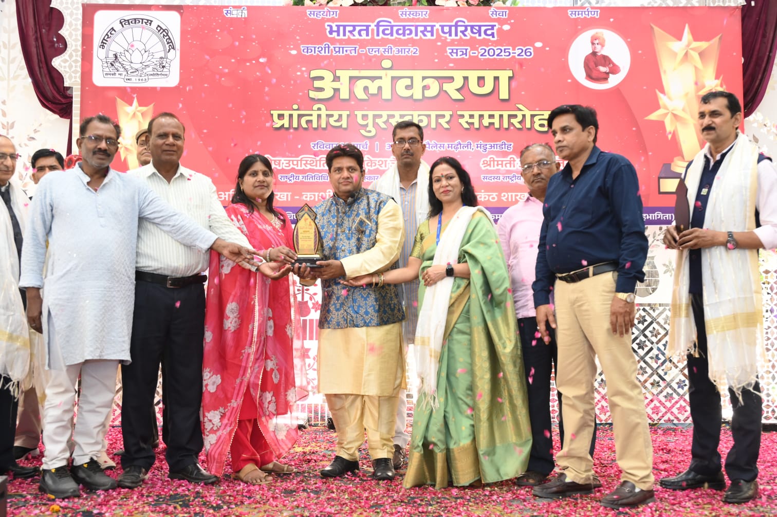 अजीत मेहरोत्रा ने बताया काशी प्रांत की 32 शाखाओं से 350 में उपस्थित सदस्यों ने भाग लिया एवं 300 से अधिक काशी प्रांत की ओर से पुरस्कार दिए गए। कार्यक्रम की अध्यक्षता प्रांतीय अध्यक्ष अजीत मल्होत्रा ने की, जबकि विशेष अतिथि के रूप में राष्ट्रीय गतिविधि संयोजक (संस्कार) मुकेश जैन की गरिमामयी उपस्थिति रही। अपने प्रेरक उद्बोधन में उन्होंने कहा कि “सम्मान केवल पुरस्कार नहीं, बल्कि संगठन के प्रति निष्ठा, सेवा भावना और संस्कारों की पहचान है। मुकेश जैन ने प्रांतीय अध्यक्ष अजीत मेहरोत्रा द्वारा वर्ष पर्यंत अभूतपूर्व एवं नवाचारपूर्ण कार्यक्रमों की खुले मन से भूरि-भूरि प्रशंसा की। उन्होंने कहा कि काशी प्रांत द्वारा वर्ष भर किए गए सेवा, संस्कार एवं संगठनात्मक गतिविधियों ने परिषद के कार्यों को नई ऊंचाइयों तक पहुंचाया है। प्रांतीय अध्यक्ष ने अपने संबोधन में कहा कि “यह सम्मान केवल व्यक्तियों का नहीं, बल्कि पूरी टीम की सामूहिक साधना, समर्पण और सेवा भाव का परिणाम है। काशी प्रांत की प्रत्येक शाखा ने वर्ष भर जिस ऊर्जा, अनुशासन और समर्पण के साथ कार्य किया है, वह वास्तव में प्रशंसनीय है। आने वाले समय में हम और अधिक संगठित होकर समाज सेवा एवं राष्ट्र निर्माण के कार्यों को नई ऊंचाइयों तक ले जाएंगे।” समारोह के अंतर्गत विभिन्न श्रेणियों में पुरस्कार प्रदान किए गए, जिनमें प्रमुख रूप से समयबद्धता शुल्क, नेत्र चिकित्सा, सर्वाधिक शाखा, विकास रत्न,, विशिष्ट सेवा पुरस्कार, सर्वश्रेष्ठ शाखा कार्यक्रम, श्रेष्ठ शाखा, सत्र के सितारे, नशा मुक्ति, संपर्क आदि शामिल रहे। कुल मिलाकर से अधिक पुरस्कार काशी प्रांत की विभिन्न शाखाओं के अध्यक्ष, सचिव एवं पदाधिकारियों के समक्ष वितरित किए गए। विशेष रूप से इस वर्ष 17 “विकास रत्न” एवं 7 विकास मित्र” को भी सम्मानित किया गया, 32 शाखाओं में अत्यंत हर्ष, उल्लास एवं गौरव का वातावरण देखने को मिला। प्रत्येक शाखा के अध्यक्ष, सचिव एवं पदाधिकारी अपने-अपने प्रयासों की सराहना से अभिभूत एवं प्रफुल्लित नजर आए, जिससे पूरे सभागार में सकारात्मक ऊर्जा एवं संगठनात्मक एकता का अद्भुत संचार हुआ। कार्यक्रम में लगभग 350 से अधिक सदस्यों की गरिमामयी उपस्थिति रही। कार्यक्रम की भव्यता, अनुशासन एवं उत्कृष्ट व्यवस्थाओं ने सभी उपस्थित जनों को अभिभूत किया “अलंकरण” जैसे आयोजन इन प्रयासों को नई दिशा एवं ऊर्जा प्रदान करते हैं। पुरस्कारों में मुख्य रूप आजमगढ़, मिर्जापुर विंध्याचल जौनपुर, गाजीपुर, रावटसगंज भदोही, एवं बनारस की 18 शाखाओं ने प्रतिभागन किया एवं सभी शाखों को पुरस्कार मिले। जिसमें श्रेष्ठ अध्यक्ष सर्वश्रेष्ठ अध्यक्ष, श्रेष्ठ सचिव सर्वश्रेष्ठ सचिव, श्रेष्ठ कोषाध्यक्ष सर्वश्रेष्ठ को